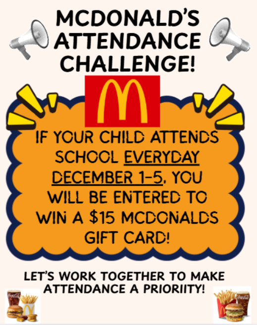 If you are a K-5 student and you are here 93% (or higher) for the three weeks we have class in December, you will receive 50 DOLLARS IN PRIDE POINTS! |