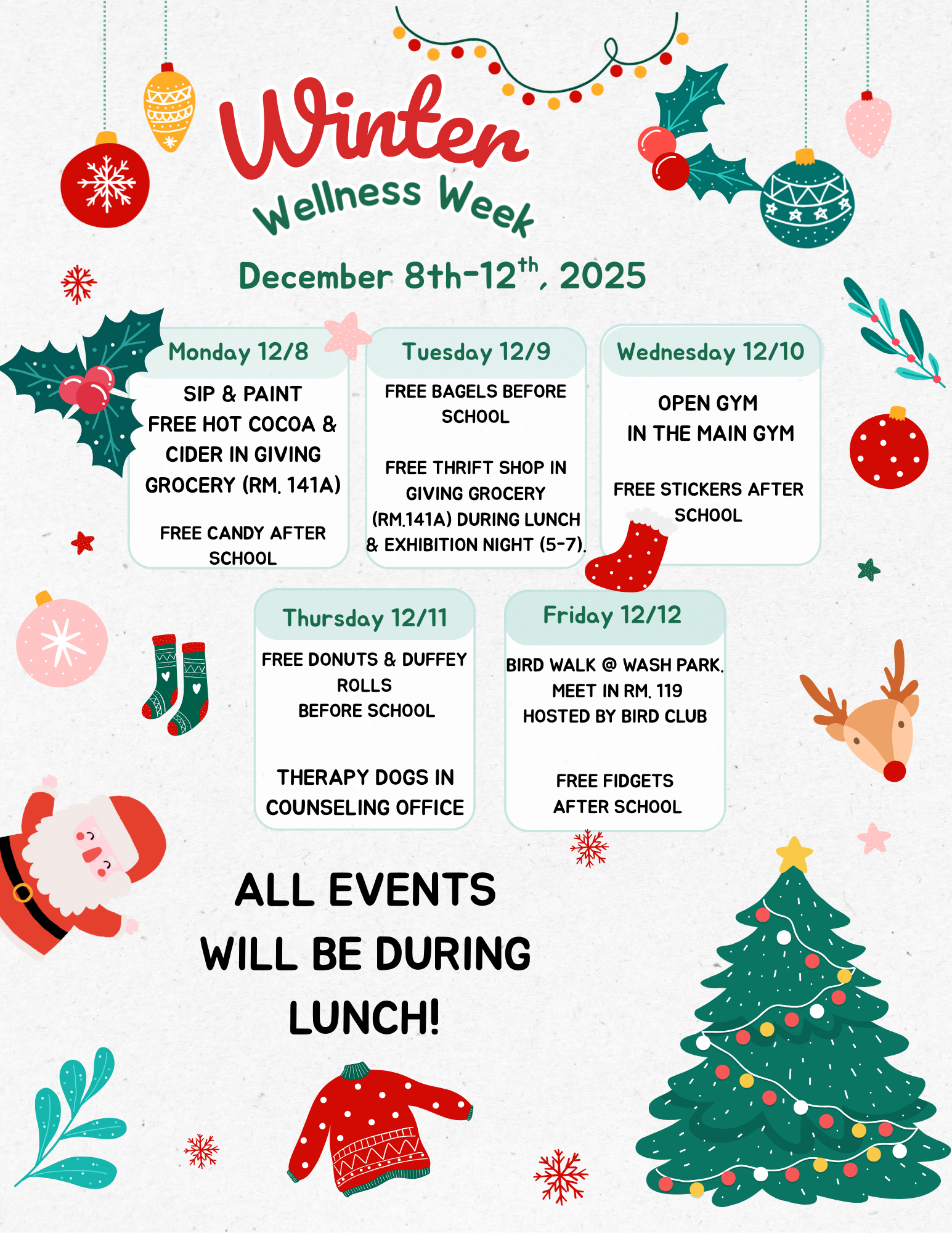 We hope you had a great Thanksgiving break. We have nine school days left until winter break! It is time to lock in as we near the end of the semester. The Finals schedule is attached below.