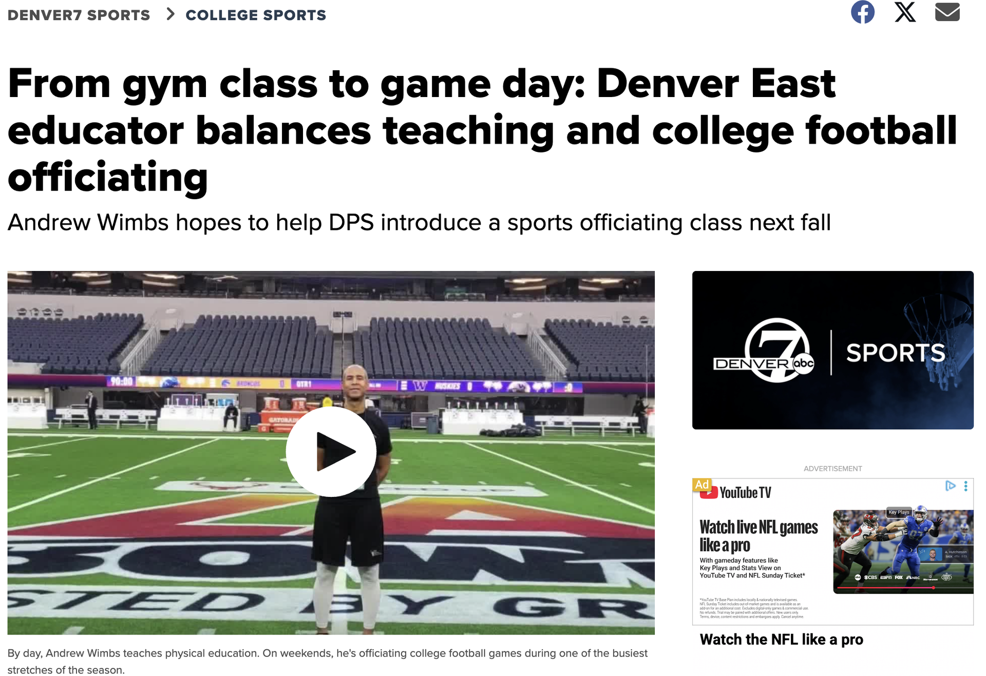 We are incredibly proud to see our very own Physical Education teacher, Andrew Wimbs spotlighted on the news to showcase his work not only as a teacher here at East, but as a college football referee in his spare time. Be sure to check out Denver 7's local news section to hear his story! |