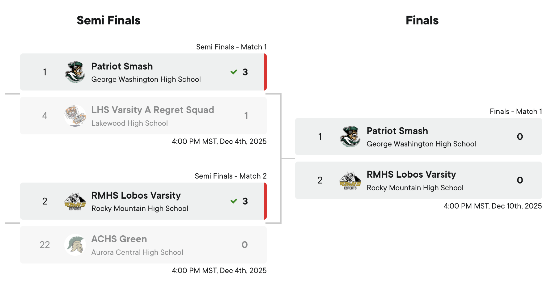 Patriot Esports is through to the finals for Smash once again, taking on their fierce rivals, Rocky Mountain High School in Fort Collins. Patriot Esports is ranked #1 in the state out of 180 teams, and they remain unbeaten in all competitions since last spring — over 40 matches!