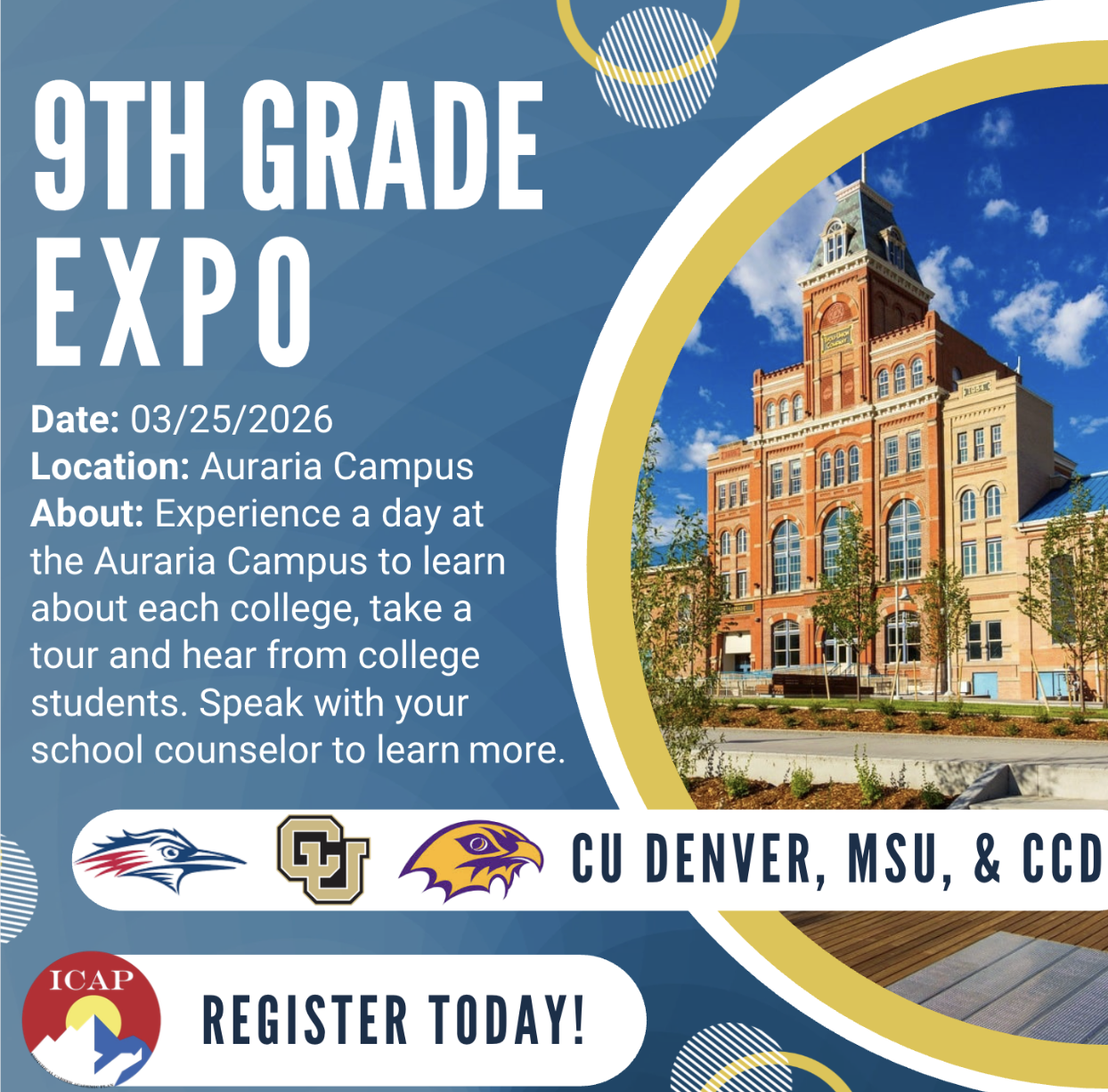 We are excited to invite your teen to the 15th Annual 9th Grade College Expo at Auraria Campus, hosted by Denver Public Schools. Students will have the opportunity to explore a tri-institutional campus, including the Community College of Denver, Metropolitan State University, and the University of Colorado Denver. This event offers a valuable chance to tour the campus and learn directly from college students. We hope they take advantage of this engaging educational experience!