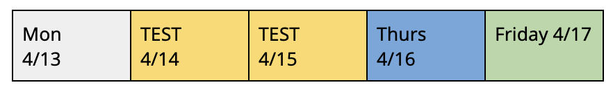 April 13th - 17th: SAT Testing