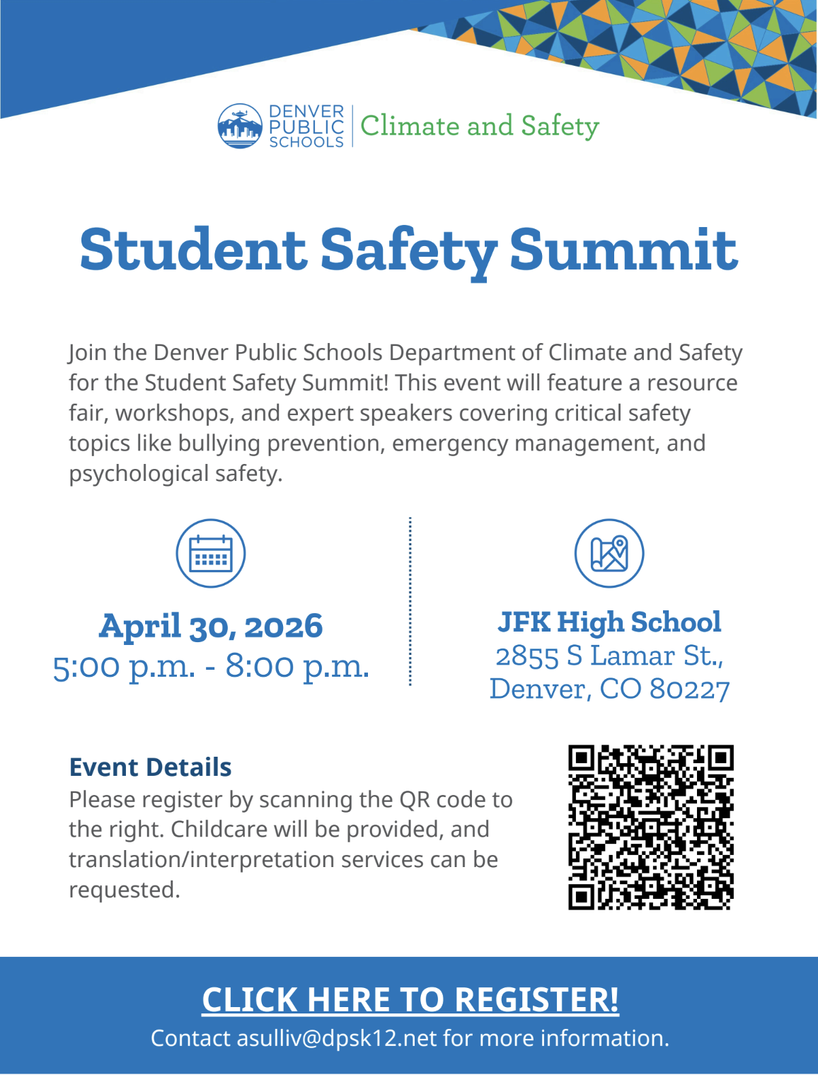 April 30th: DPS Safety Summit, 4 - 7 PM