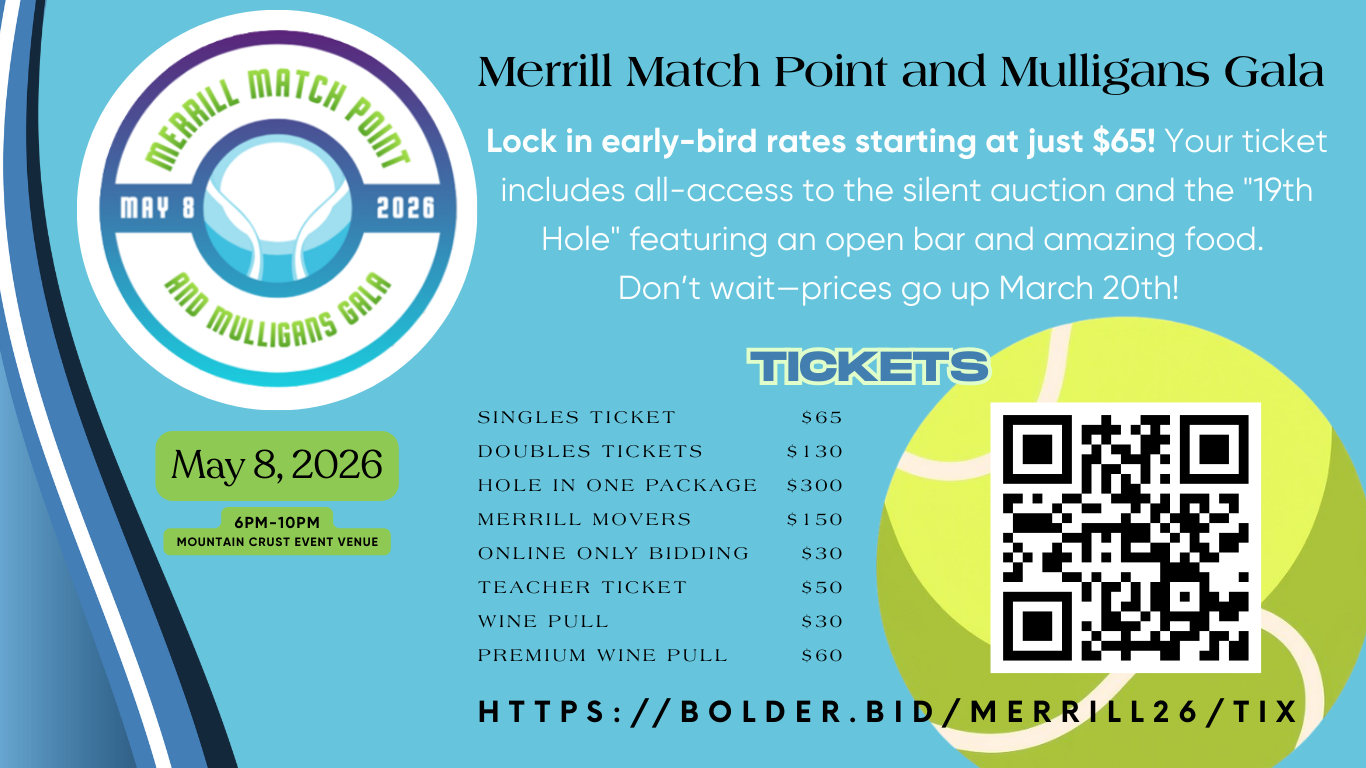 3/11/26- Merrill PTSA Meeting 6:30pm @ Campus Lounge 5/8/26- Merrill Auction! Match Point and Mulligans Gala 5/27/26- 8th Grade Continuation @ South 5-7pm |