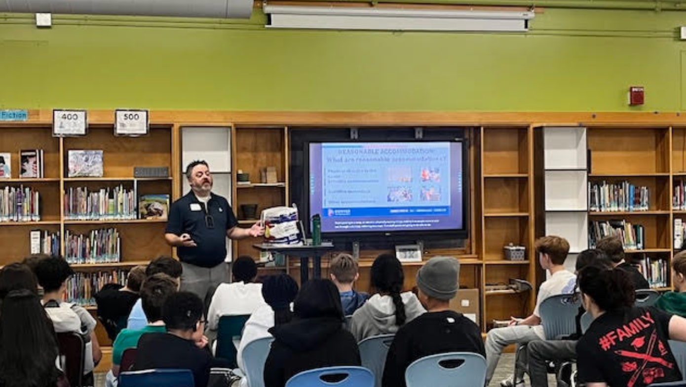 Students in 7th grade language arts had the privilege of having two incredible guest speakers come in to speak about ADA (Americans with Disabilities Act) to help them with their PBL unit! |