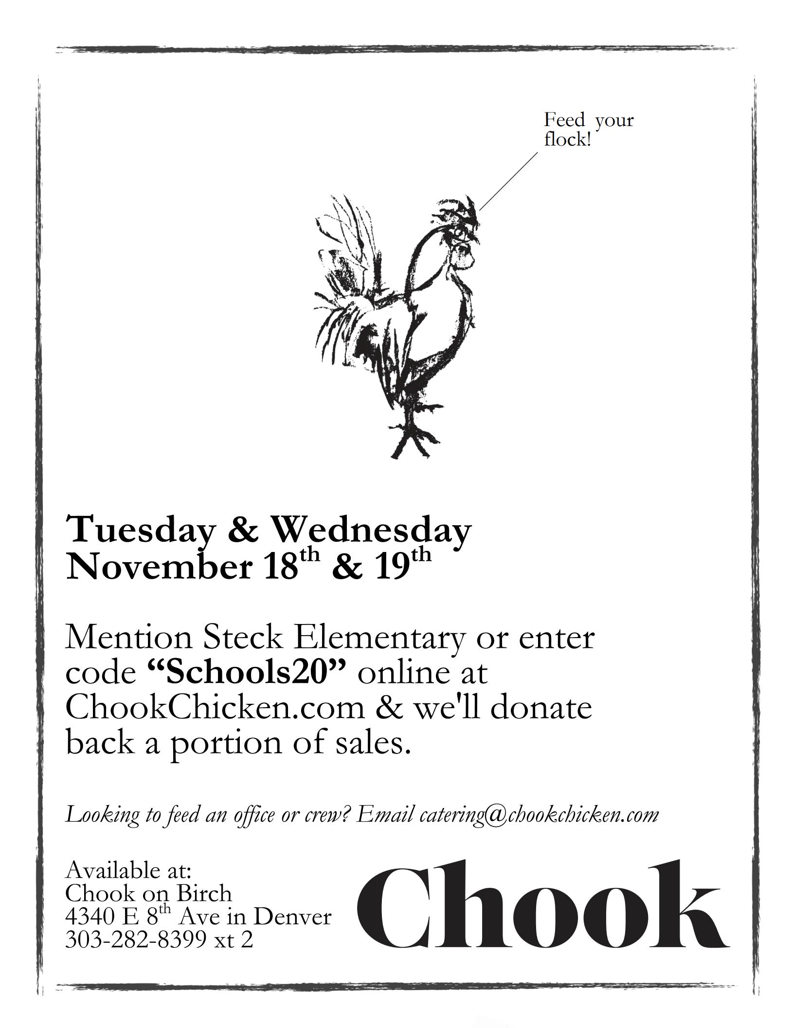We've got a great dine out with a local favorite this week. Head over to the Chook on Birch tomorrow & Wednesday and 20% of your order will go towards our school. It's the perfect time to give yourself a break from cooking right before the Thanksgiving rush.