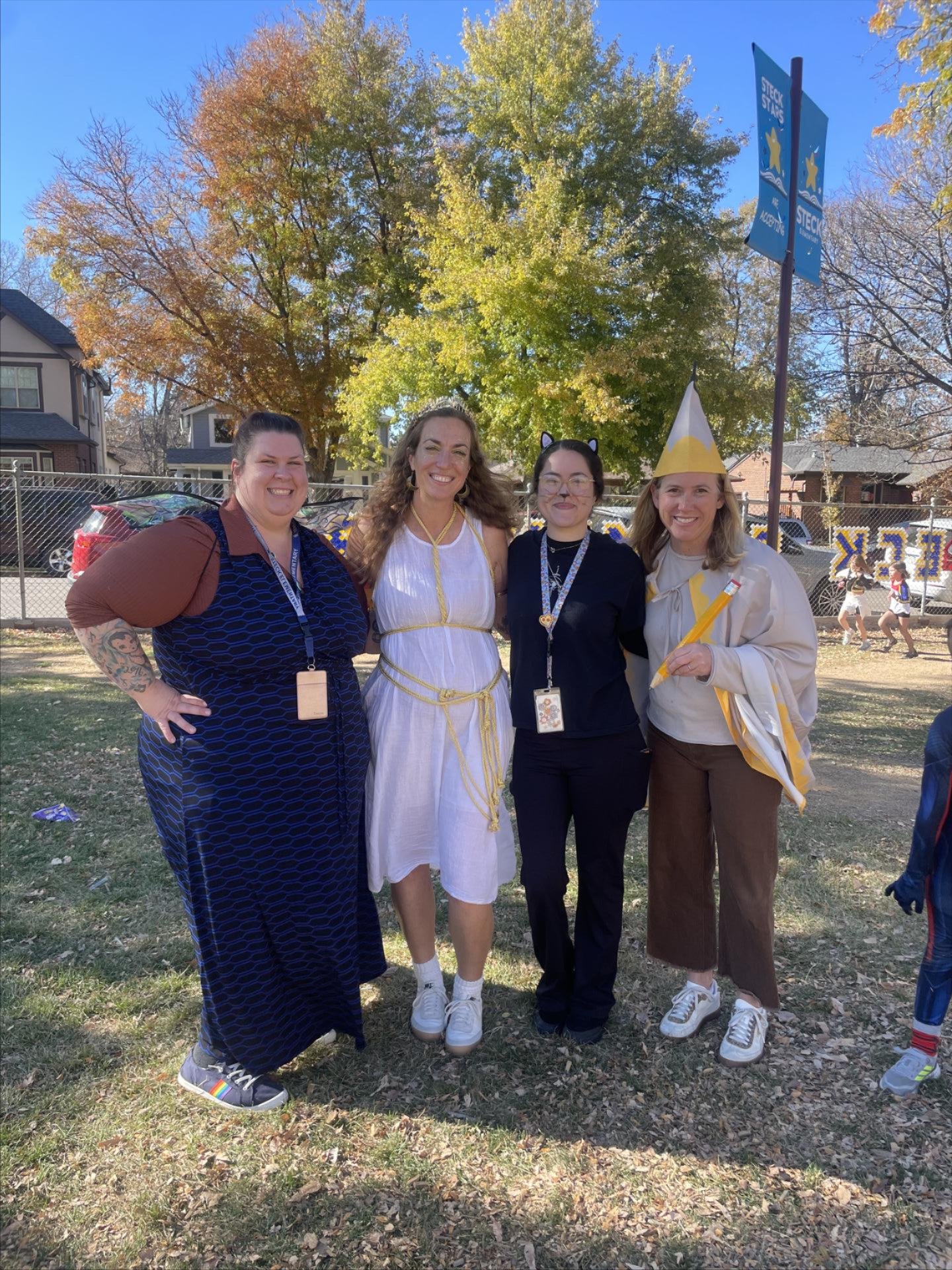 L to R: Para Katie Romero, 2nd grade math teacher Jess Garay, 2nd grade literacy teacher Carrie Maxfield and Para Jess Moreno (photo taken at the Halloween parade)