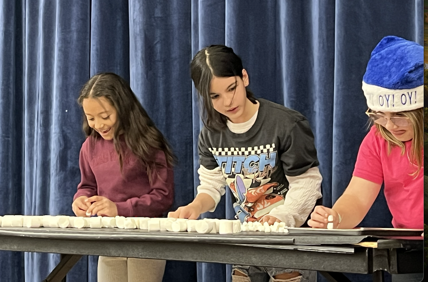 Minute to Win It Winners: ECE Eloise H., Kinder Henry F., 1st Naomi A., 2nd Mathilda L., 3rd Aryceli C., 4th Clem K., 5th Ella M. This months' game: Build as many snowmen as you can out of marshmallows! |