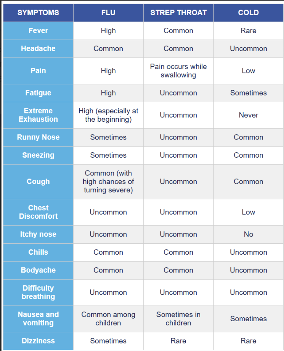 And finally, here is guidance on How Sick is Too Sick to be at school. For strep, a student must be kept home for 12 hours after starting antibiotics. For flu, they must stay home until they are fever-free for 24 hours without the use of fever-reducing medications and other symptoms have been improving for 24 hours.