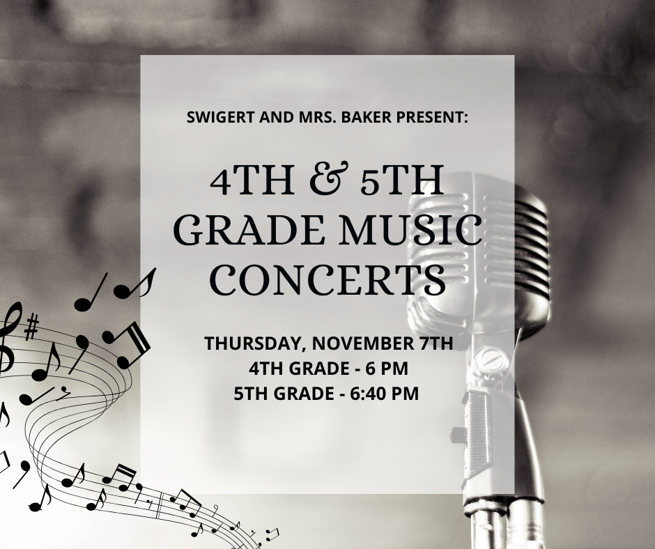 The 4th and 5th grade concerts are coming soon on Thursday, November 7th.