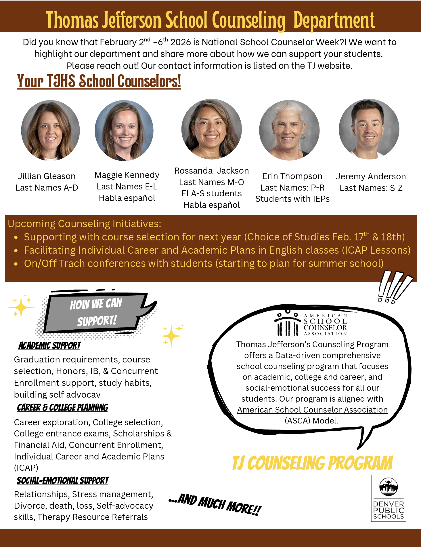 2026-2027 Leadership: Our Co-President and Secretary positions will all be vacant as of May. We are hoping to have “apprentices” in place to shadow this role for the remainder of this semester. Interested in any of these roles within TJHS PTO next year? Please reach out to us directly at TJHSPTO@gmail.com |