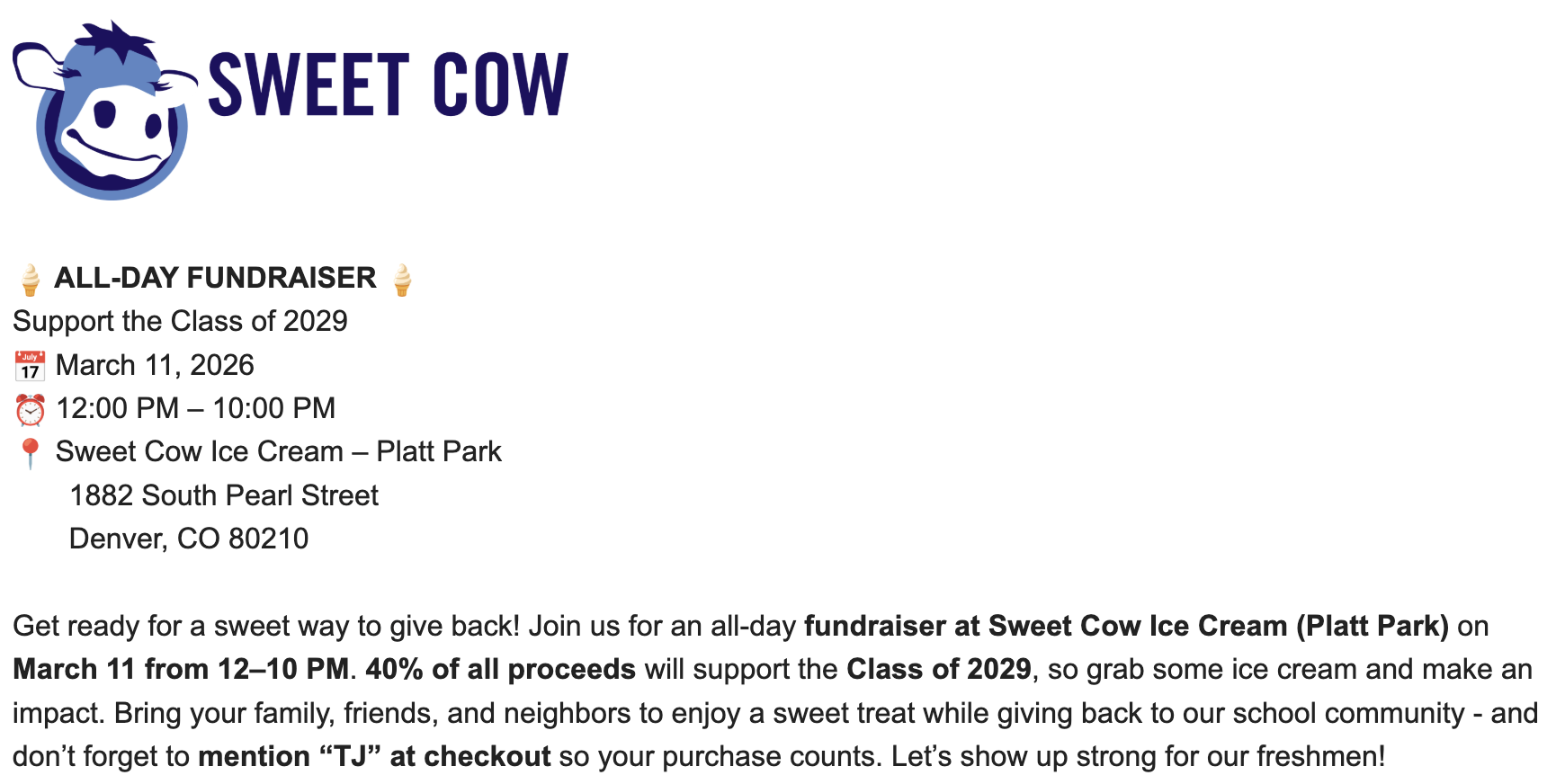 Thank you to everyone who joined our After Prom planning meeting last week. We’re making great progress toward a fun and memorable night for our seniors. It’s not too late to get involved—our next meeting is Thursday, March 12th at 6:00 p.m. in Room 111. We’d love to have you there. Thank you, Carrie and Sheila |