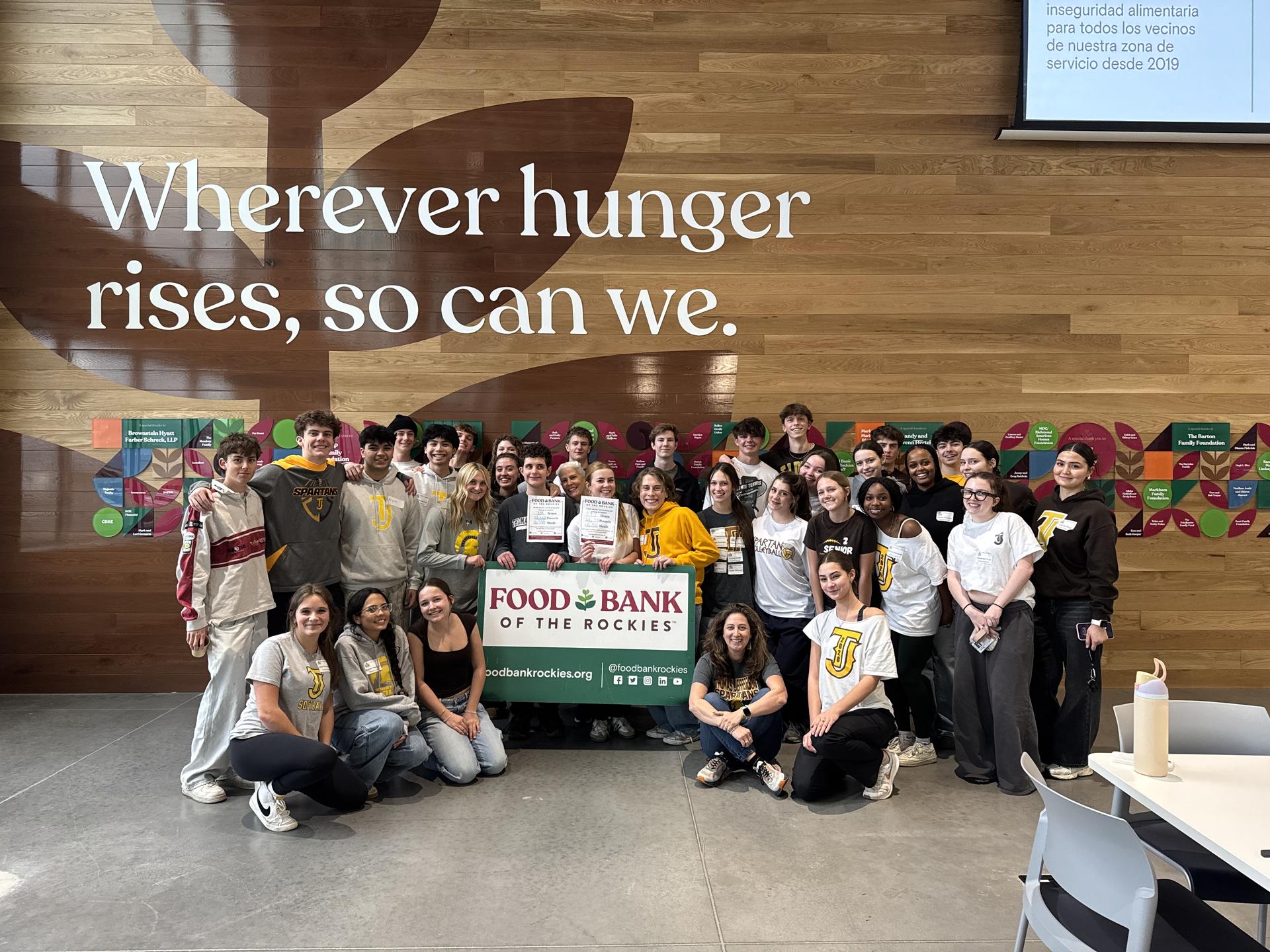 Mrs. Thompson, Mrs. Lynch, and TJHS Student Leadership volunteered at Food Bank of the Rockies, packing almost 30,000 meals, 40,000 lbs of food, and helped over 1,100 families. Thank you for your hard work!